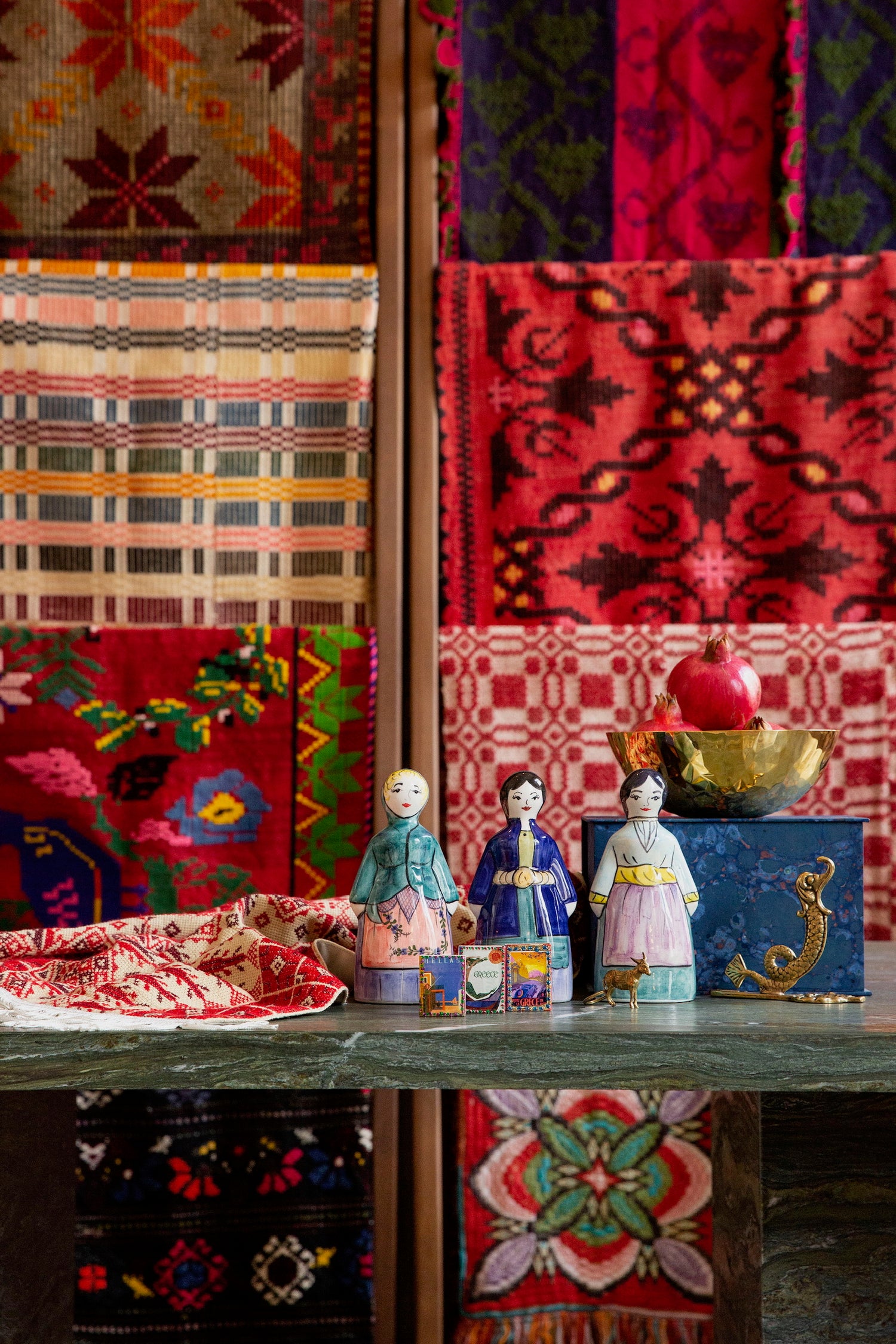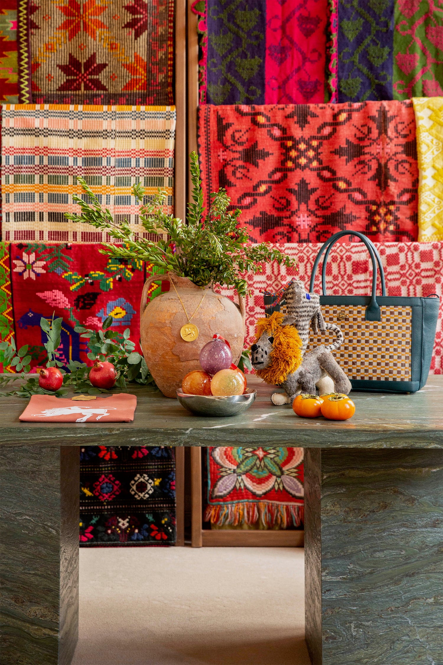 Illuminate gatherings with objects made to glow. The Panito Stone Dish—carved from Parian marble and accented with our favorite barnyard friend in brass—brings a wink to the table. Hand-Blown Glass Amphoras are luminous and delicate, each one-of-a-kind. Our Glass Christmas Ornaments catch and scatter the light, adding a festive shimmer to any branch or tablescape. A richly textured Table Runner grounds it all, framing your table piece with warmth and softness. As a true showpiece, the Agate Kaleidoscope Glass Table—stained glass and agate—anchors any room with its color and glow.