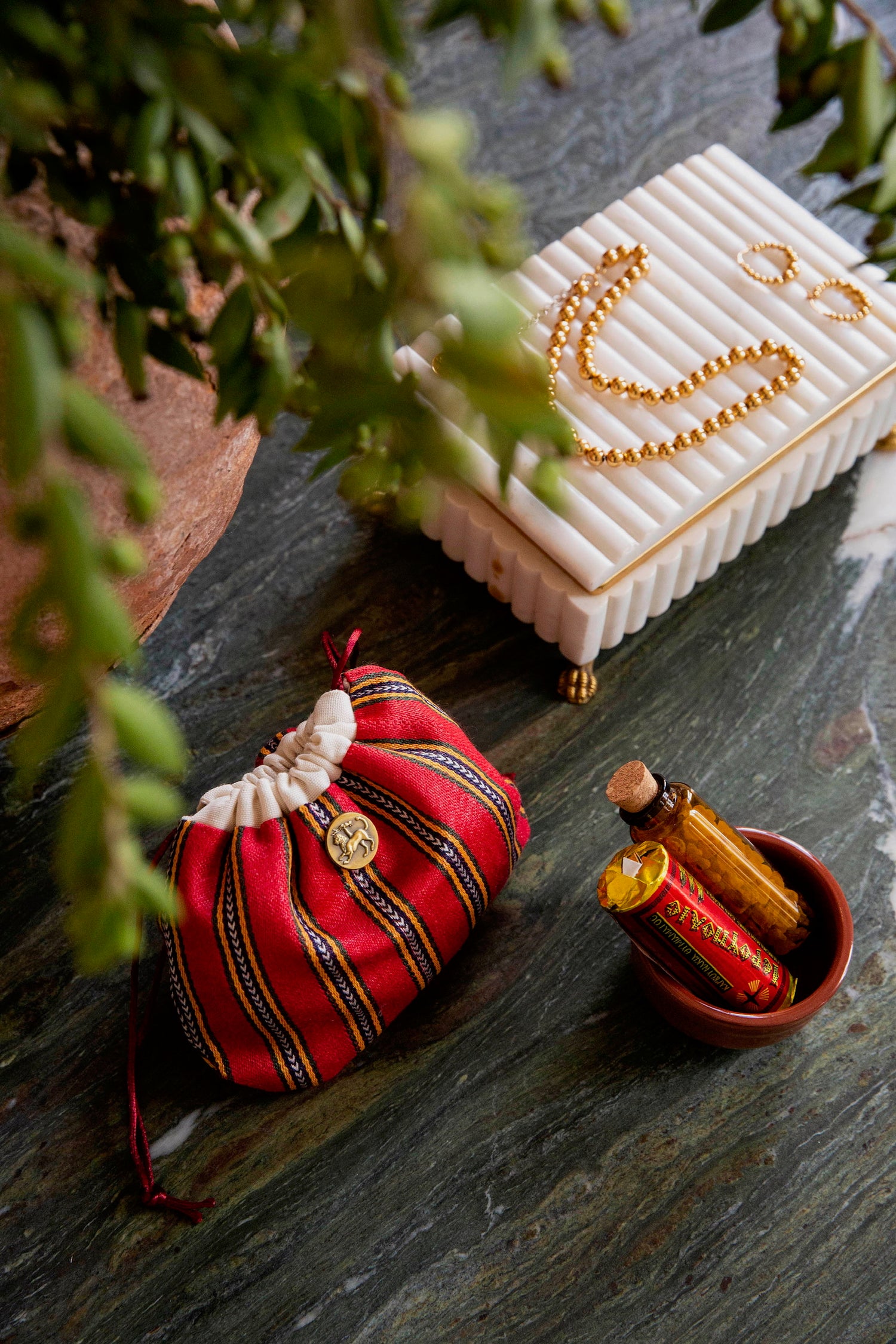 Honor the sacred in the everyday with pieces inspired by ritual, lineage and light. The Stella Rose Oracle Necklace—a beaded heirloom passed down from Andria's mother—returns, reborn, alongside the Stella Rose Oracle Earrings, luminous with maternal elegance. The Chimera Intaglio Ring revives the ancient art of intaglio — the technique once used to create seals for kings, merchants, and philosophers. Here, the chimera rises in relief—a modern signet of resilience. Anthi Vintage Textile infuses spaces with Cretan ritual, while Anthologist Frankincense completes the rite with notes of sacred prophecy and clarity.