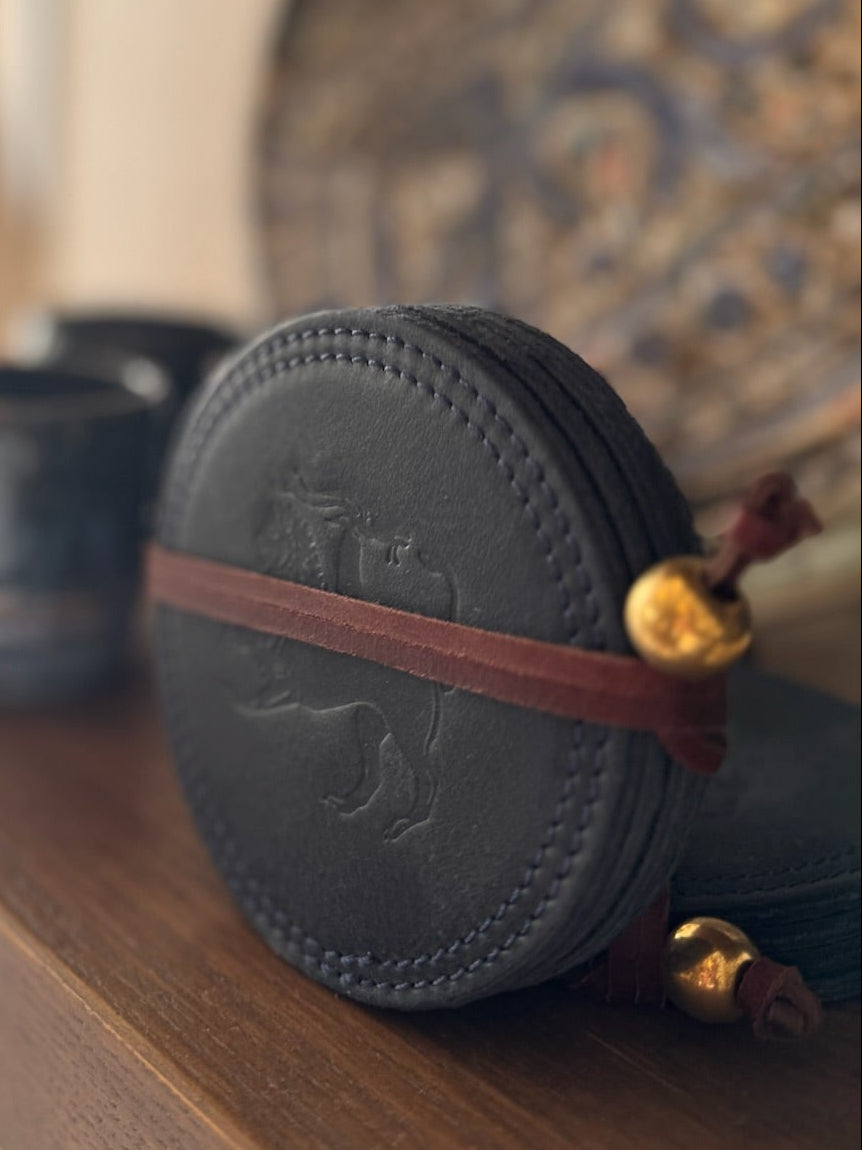 The Anthologist logo is debossed by hand using a solid brass mold and traditional methods by artisans in Athens, Greece. Evoking the sense of something that’s been around forever, we've chosen an aged, oiled, deep green or brown leather to create our signature coasters. We left the edge raw to show its beauty. A perfect spot to perch your martini, or your morning coffee. An ideal gift.