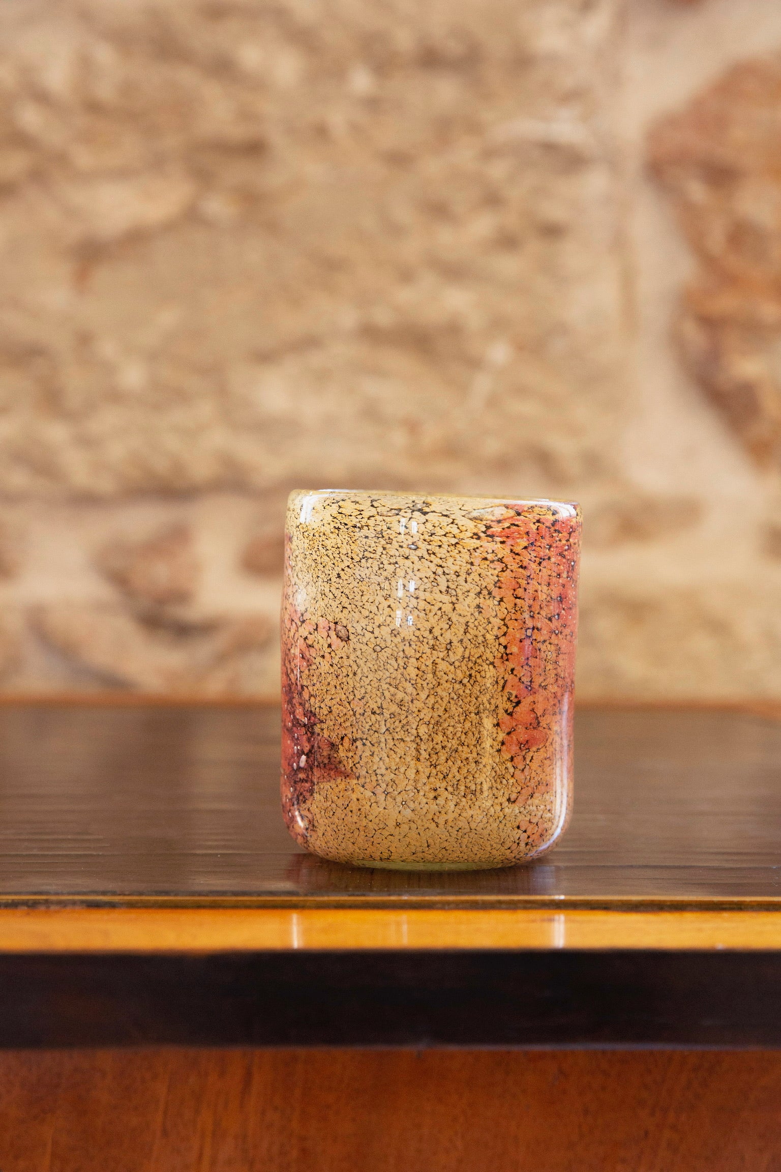 Named for its honeyed glow, the Meliágge Water Glass is mouth-blown in a small Athens workshop by one of the last glassblowers in Greece — a continuation of the endangered craft we are committed to preserving. Each vessel is formed in a single breath, then infused with molten streams of amber, soft gold, and ember-red that dissolve into delicate, speckled gradients.