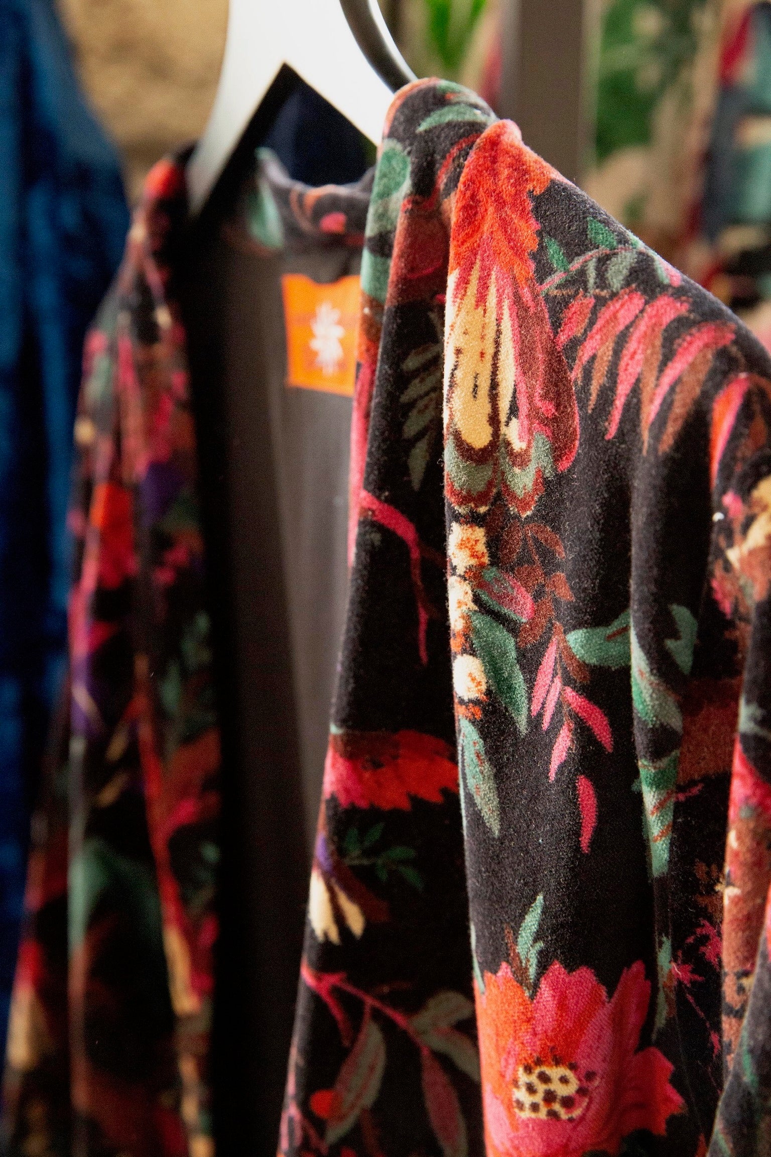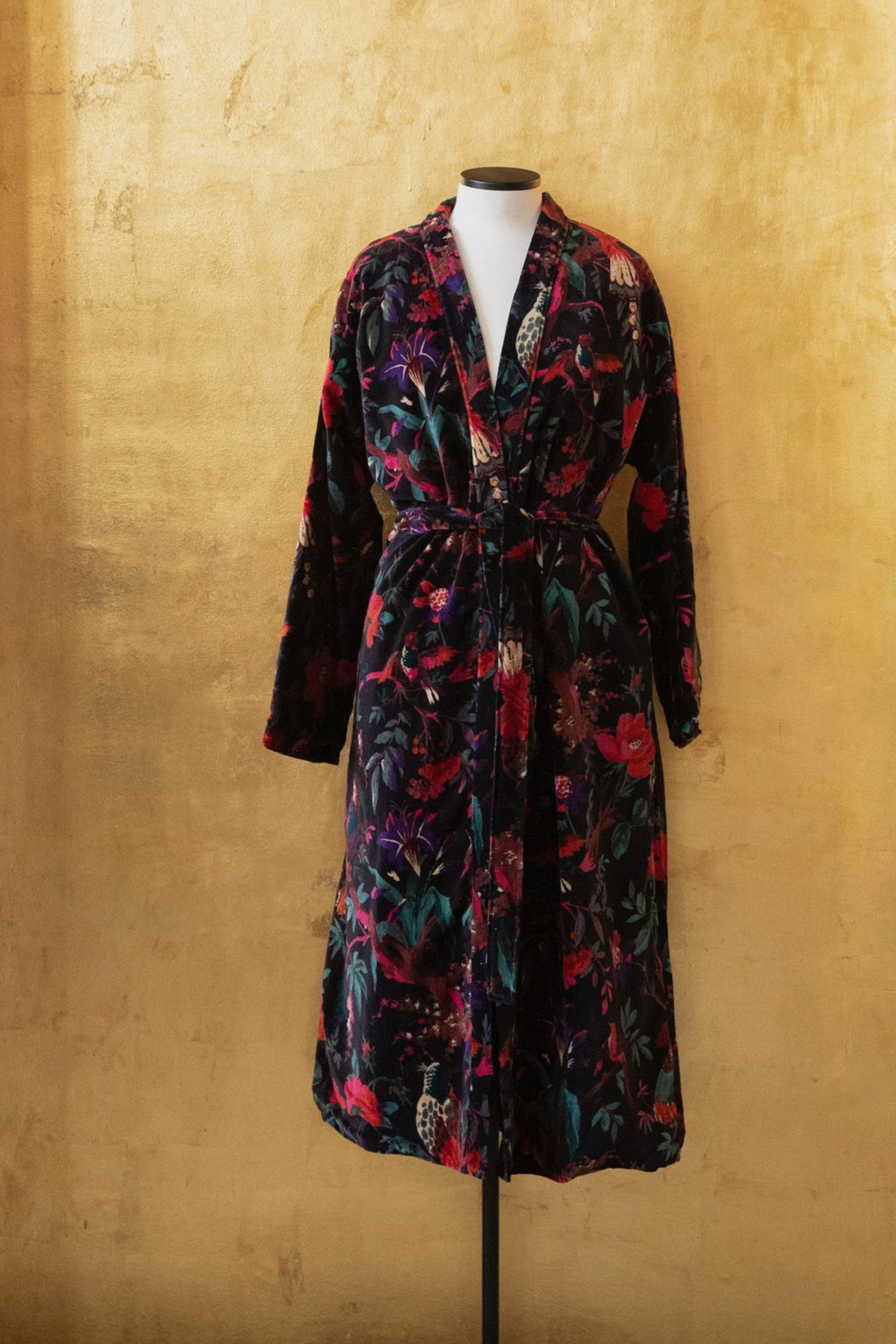 Anthologist x East Winds Velvet Robe, Black, Tropical Print