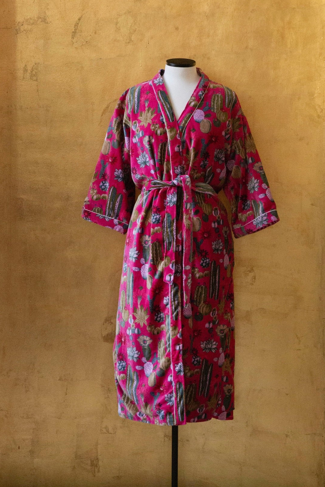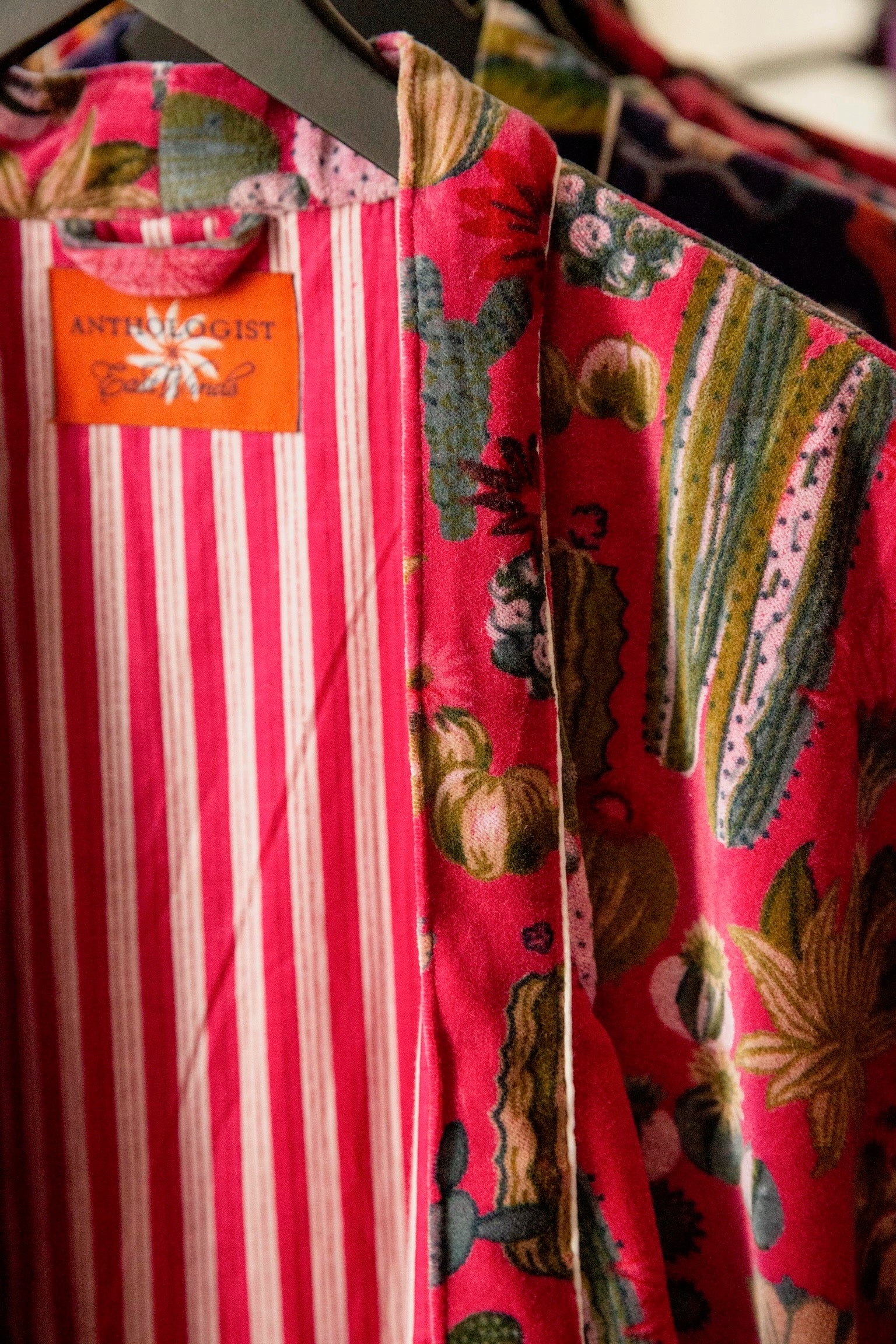 Anthologist x East Winds Velvet Robe, Hot Pink, Cactus Print