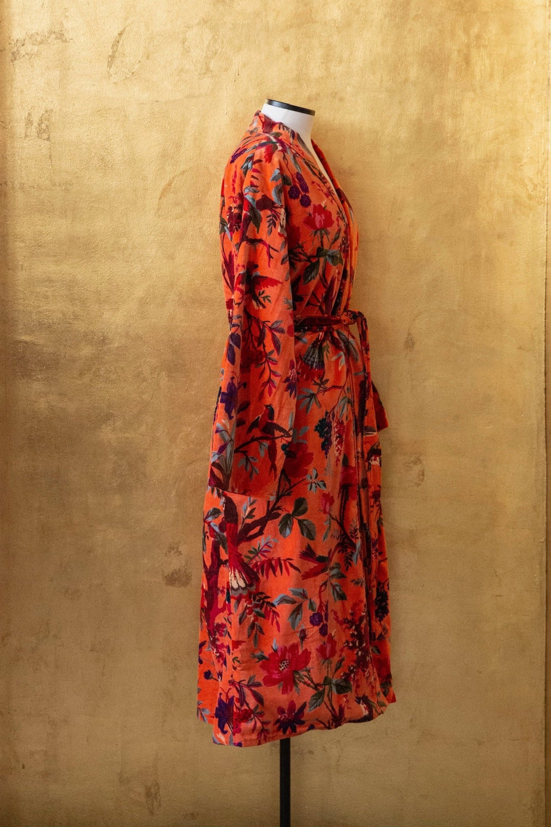 Anthologist x East Winds Velvet Robe, Orange Tropical Print