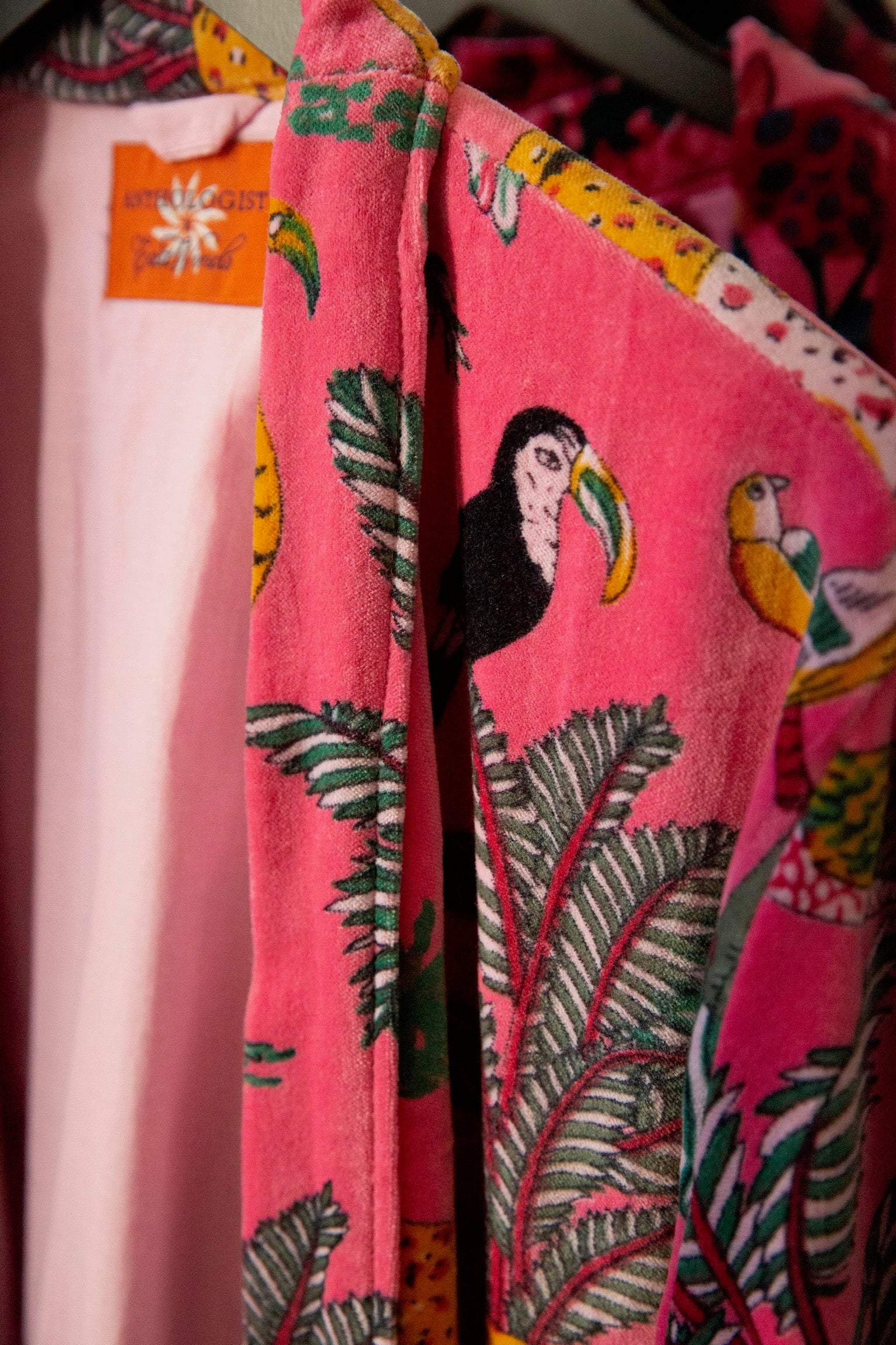 Anthologist x East Winds Velvet Robe, Pink Jungle Print