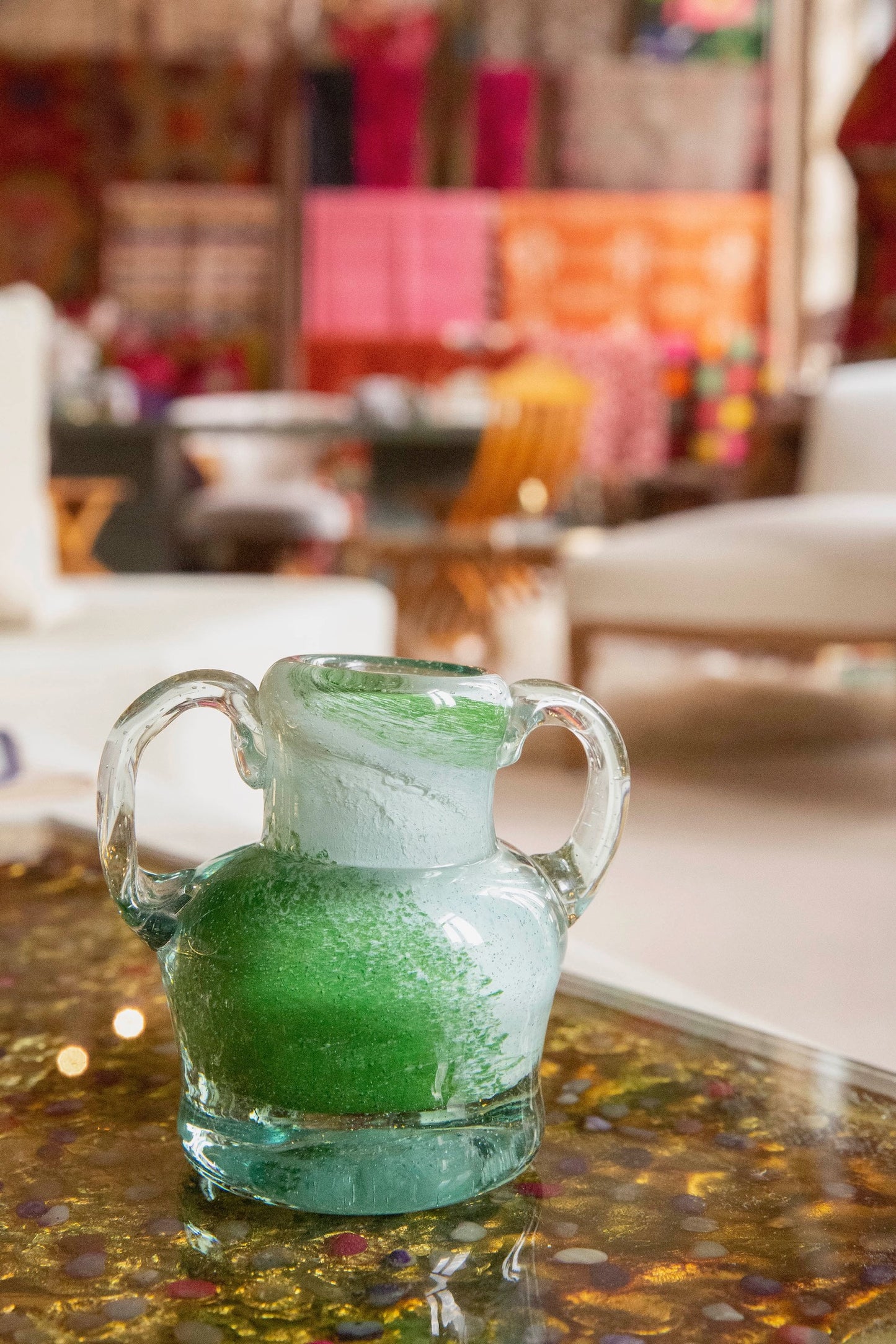 Blown Glass Amphora Vase, Green, Small
