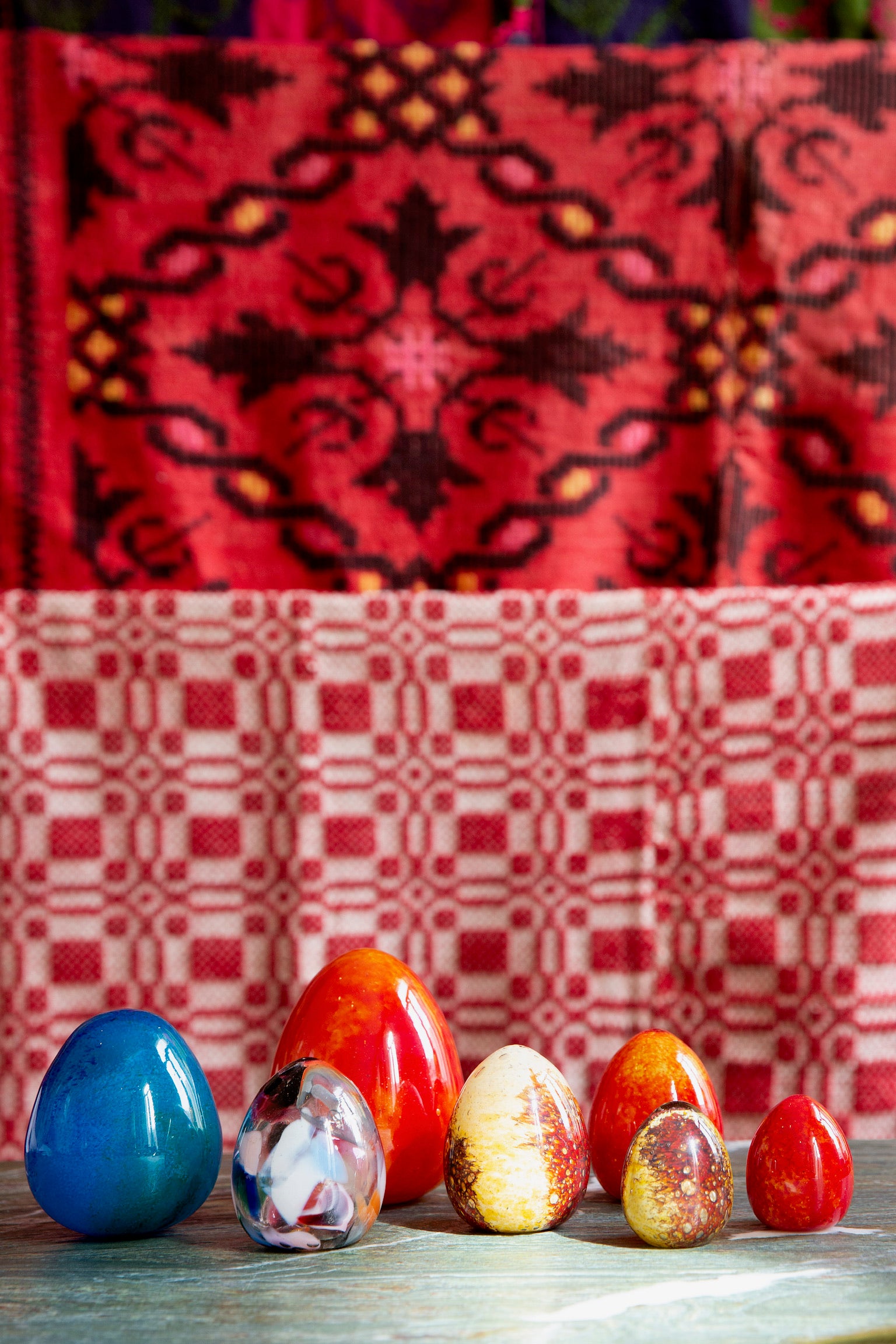 No two eggs are ever the same. Each carries the memory of other objects once melted down and reborn — a small act of alchemy in glass.