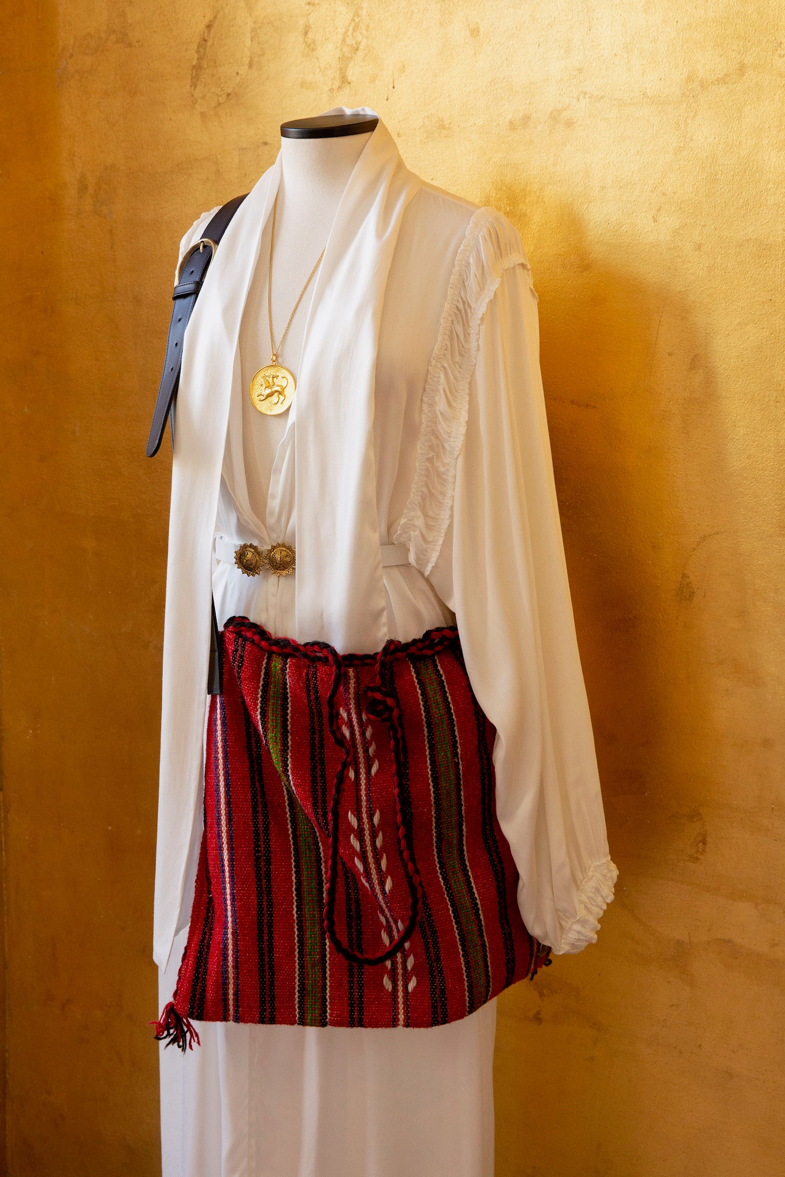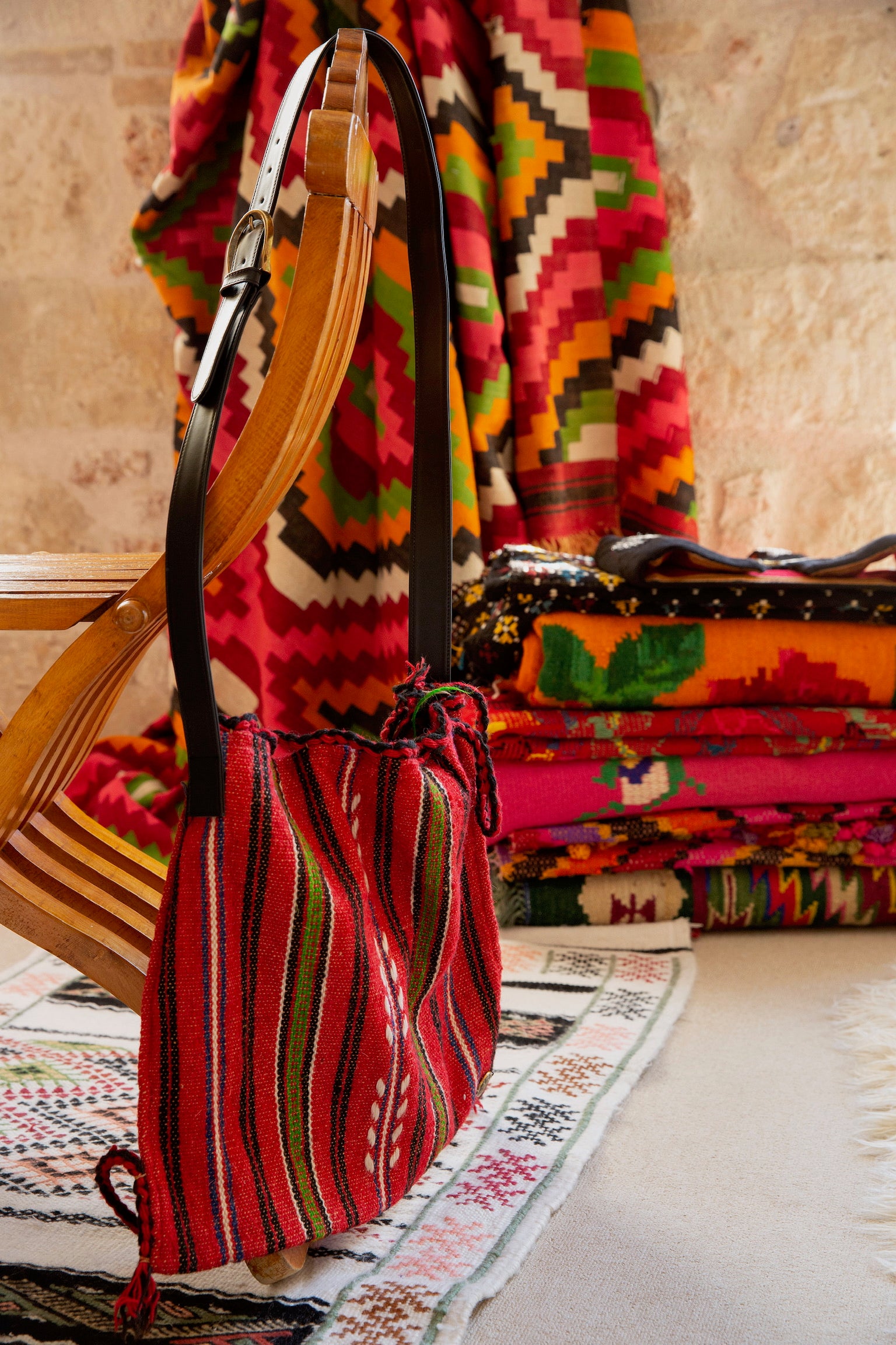 Every tagari in our collection is sourced by Anthologist’s founder and creative director, Andria Mitsakos, who selects them for their colors and patterns, using her unparalleled eye for design. Once chosen, they are up-cycled with the addition of Italian leather and hand-finished hardware.